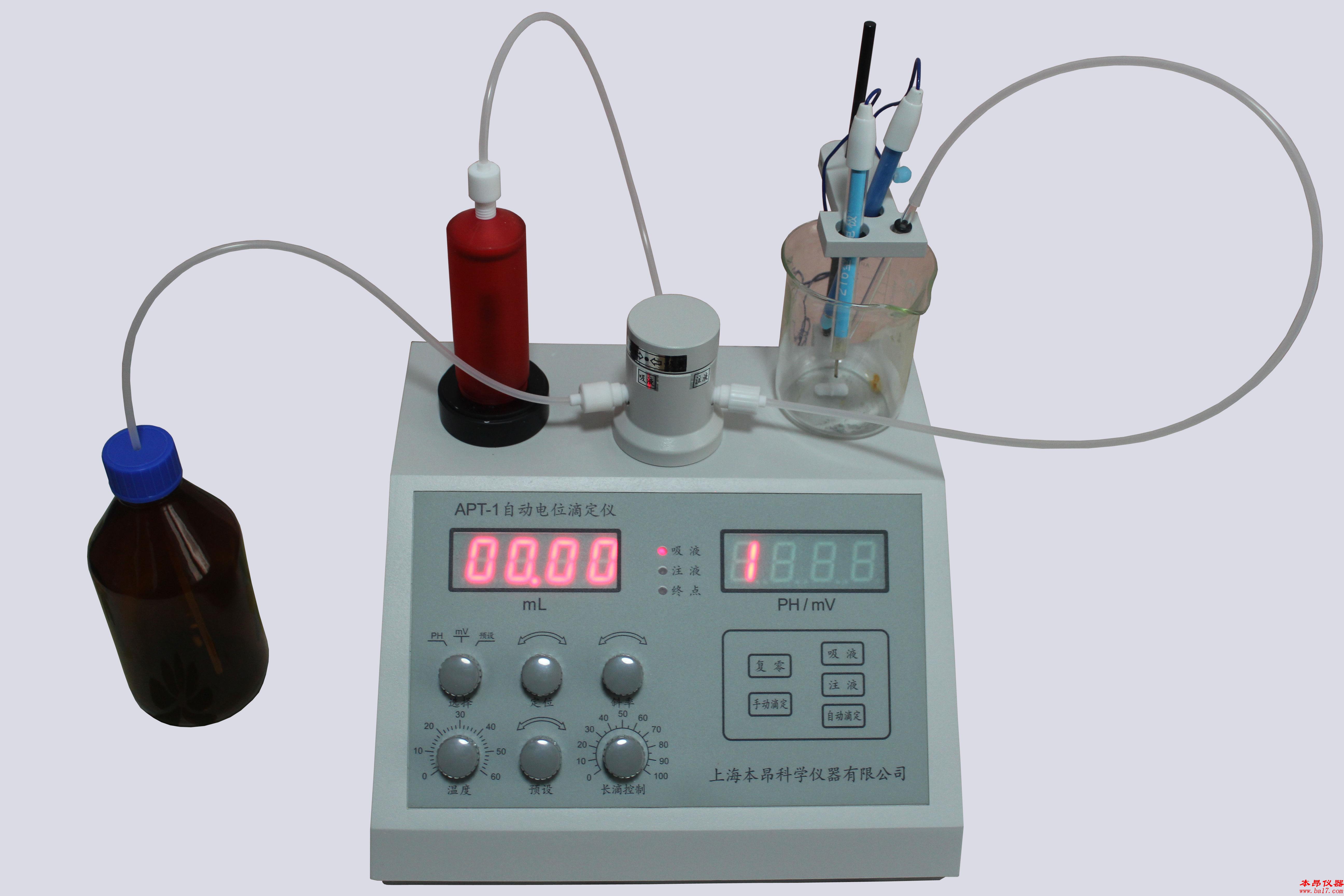 APT-1自動電位滴定儀特制的精密計量泵、三通轉(zhuǎn)換閥等液路部分都選用特殊材料制成,耐腐蝕性佳,可保證常年連續(xù)工作。APT-1自動電位滴定儀內(nèi)置精密自動極性反轉(zhuǎn)電路,自動跟蹤終點電位,一鍵滴定開始后,直至測定結(jié)束,使用者無需再有任何操作,即方便了使用,又克服了人為誤差。APT-1自動電位滴定儀同時又是一臺0.01級高精度的PH計,在實驗室可作為精密PH計使用。本儀器具有自動滴定等功能,容量滴定值有LED直接數(shù)字顯示,無論手滴或預(yù)設(shè)終點自動滴定都非常方便直觀。